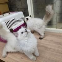 布偶貓是一種中型貓,以柔順的長毛和藍色的眼睛著稱。牠們性格溫柔、友善,對主人非常親近,喜歡被抱起。布偶貓需要適量的運動和定期的毛髮護理,是理想的家庭伴侶貓,適合室內飼養。